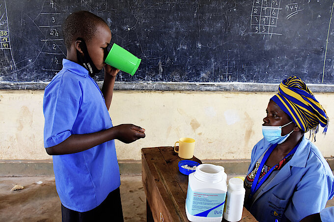 Abana bafite Imyaka 5-15 ndetse n’abantu bakuru bahawe ibinini by’inzoka (Albendazole na praziquantel)